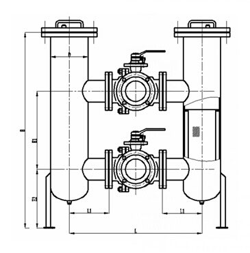 雙聯(lián)切換式過(guò)濾器,采用兩個(gè)三通球閥,將兩個(gè)單筒過(guò)濾器組裝在一個(gè)機(jī)座上,清洗過(guò)濾器時(shí)不必停車,確保其連續(xù)工作。
